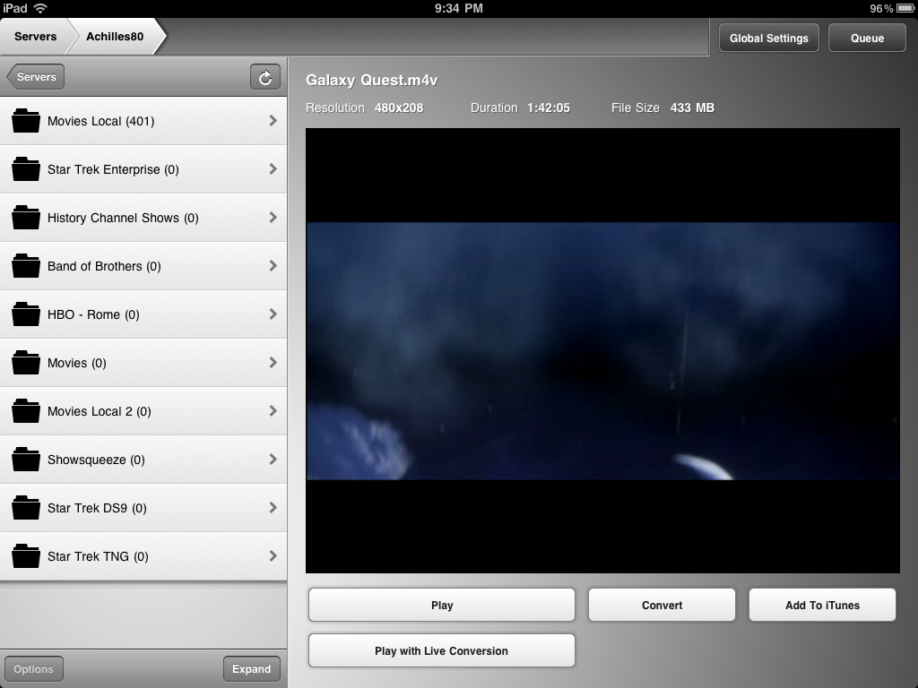 Air Video has a number of great features including, as you may guess, video streaming but it can also do a couple other great tricks such as converting video on-the-fly so that it can be watched immediately and doing offline conversion to iOS-compatible formats. Air Video can recognize and play the following formats: mp4, m4v, mov, avi, wmv, asf, mpg, mpeg, mkv, 3gp, dmf, divx, and flv. While this article is written with the iPad in mind (all screenshots are taken from the iPad version), this software also runs on the iPhone and iPod Touch.