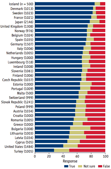 The statistics presented about % of people supporting the religion of evolution or scientific naturalism or philosophy of science (uppss) are utter bullocks! Statistics of IPSOS a research center from the UK shows complete other stats.